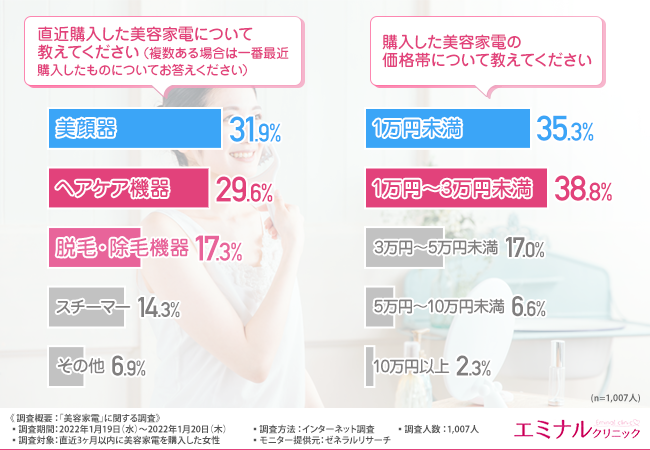 今回、「美容家電」に関する調査を実施したエミナルクリニック(https://eminal-clinic.jp/)では、