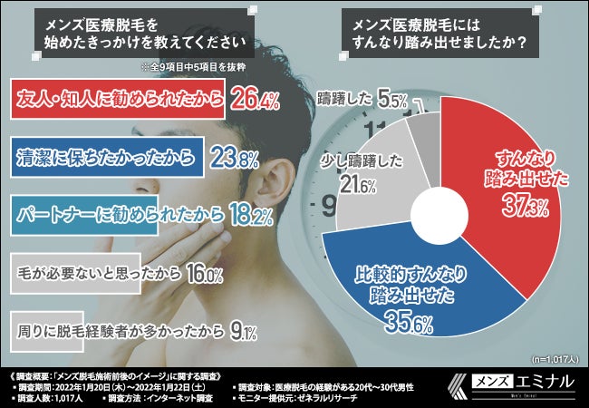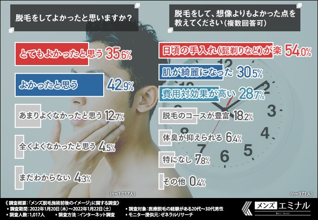そこで今回、メンズ医療脱毛クリニック『メンズエミナル』(https://mens-eminal.jp/lp/)は、医療脱毛の経験がある20代~30代男性を対象に、「メンズ脱毛施術前後のイメージ」に関する調査を実施しました。