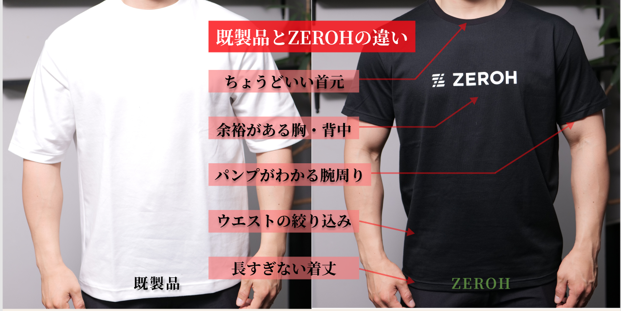 「ZEROH Tシャツ」はトレーニーの身体を活かして、見栄えがするように設計されたTシャツです。