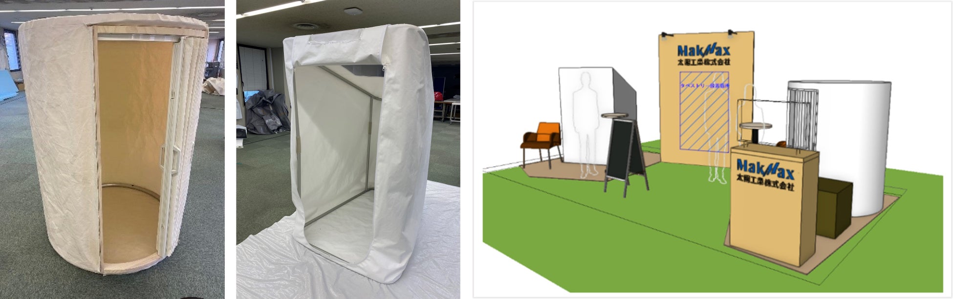 お見舞い用防護スーツ「メディコン」やエアチューブ式緊急避難橋など、これまでも社会のお役に立てる製品としての開発方針の下、様々な製品を世の中にニーズに合わせた様々な改良を加えながらも製品化を実現して参りました。今回の出展を通じて、一人ひとりにとっての「癒し空間」とはなにか、さらに今後の製品開発に繋げ、反映していく所存です。