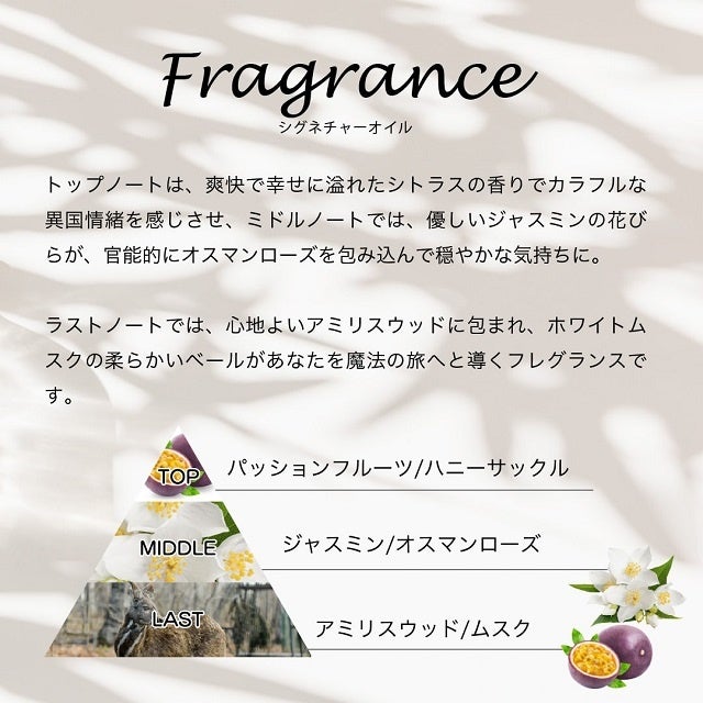 1本で、大きく分けて3段階の香りをお楽しみいただくことができ、飽きることなくお使いいただけます。