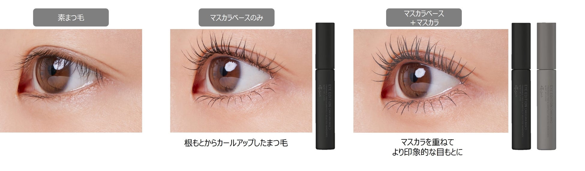また定評がある、まつ毛を長時間カールキープするアイエディション(マスカラベース)とのセット使いがおすすめ。エテュセの「マスカラベース&マスカラ」でまつ毛のポテンシャルを引き上げます。