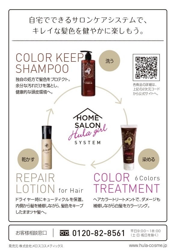 フラガールは、太陽の下でいきいきと躍るフラガールたちのように、内面から輝くような美しさをもたらす、ヘアケアブランド。プロユースのヘアケア化粧品でヘアスタイリストたちからの絶大な支持を誇る、メロスグループの長年の技術と研究が集結し誕生しました。