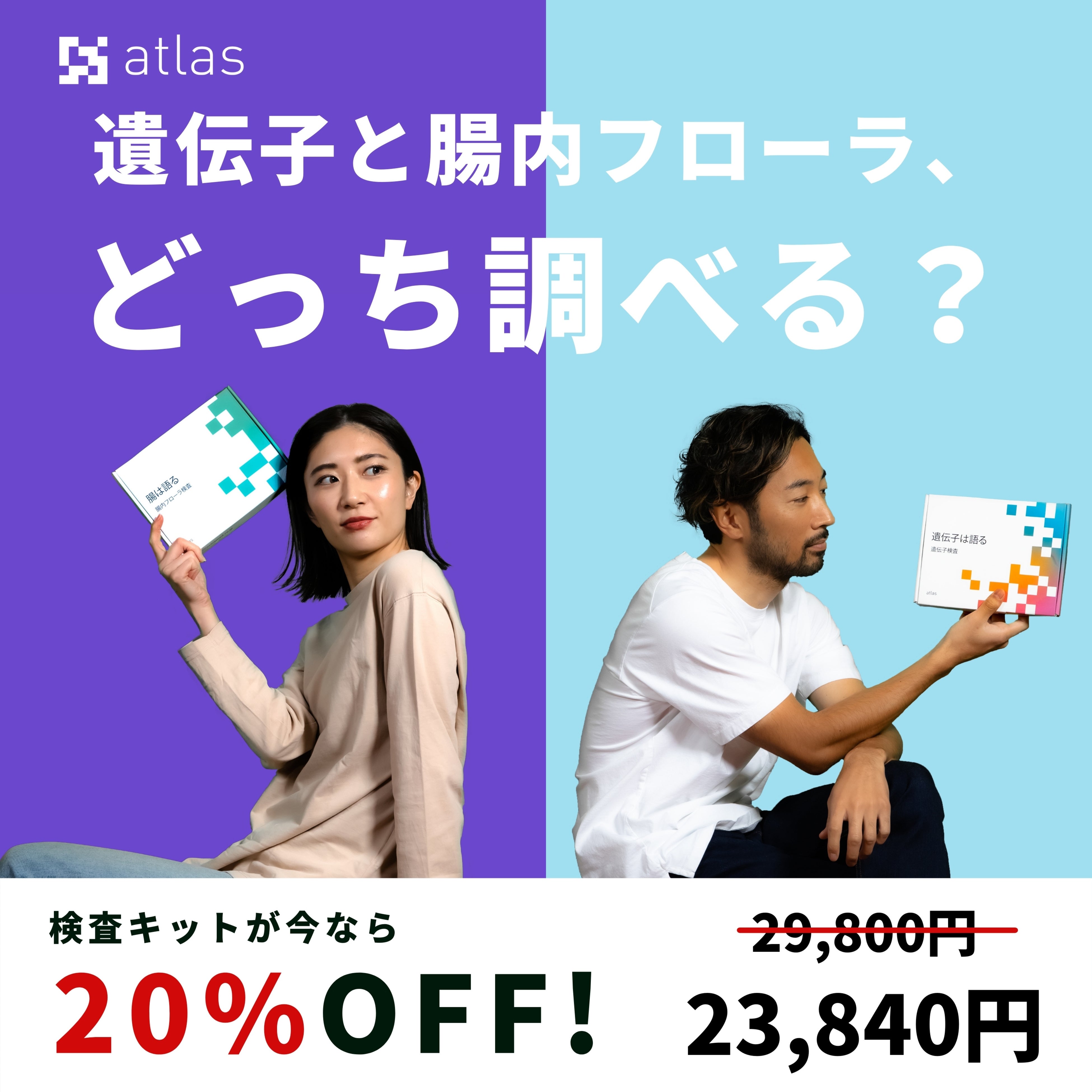 遺伝子検査、腸内フローラ検査 20%オフ