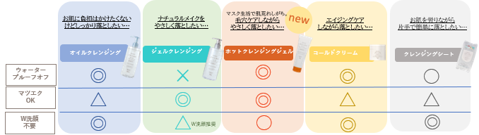 <特徴④>目的に合わせて選べる5つのクレンジング