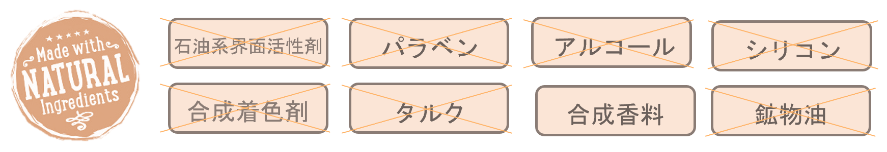 * 石油系界面活性剤・シリコン・アルコール・香料・合成着色剤・パラベン・タルク・鉱物油 すべて無添加