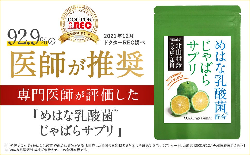 レバンテの「じゃばらサプリ」が、医師が推奨する信頼の証「ドクターREC」で92.9%の高評価を獲得!!