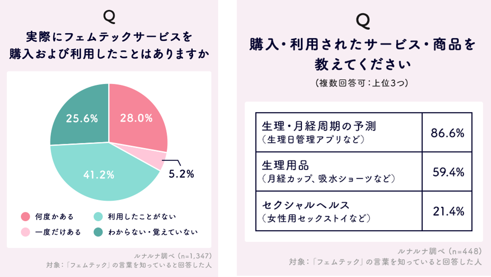 Q. 実際にフェムテックサービスを購入および利用したことはありますか。