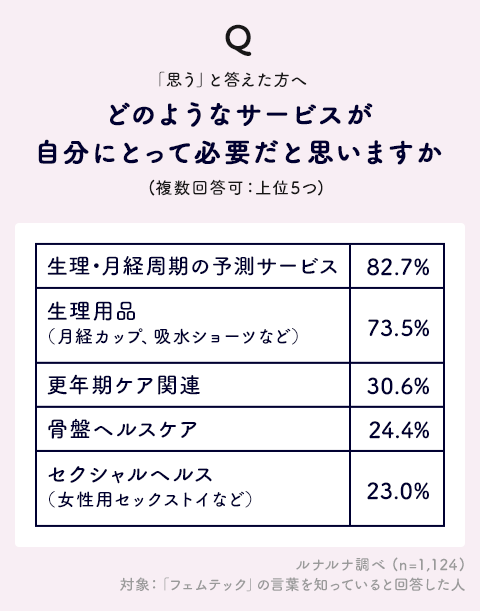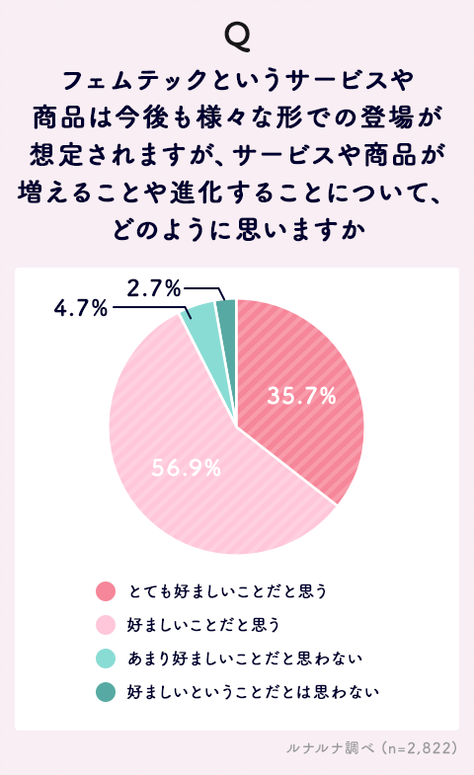 Q. フェムテックというサービスや商品は今後も様々な形での登場が想定されますが、サービスや商品が増えることや進化することについて、どのように思いますか。