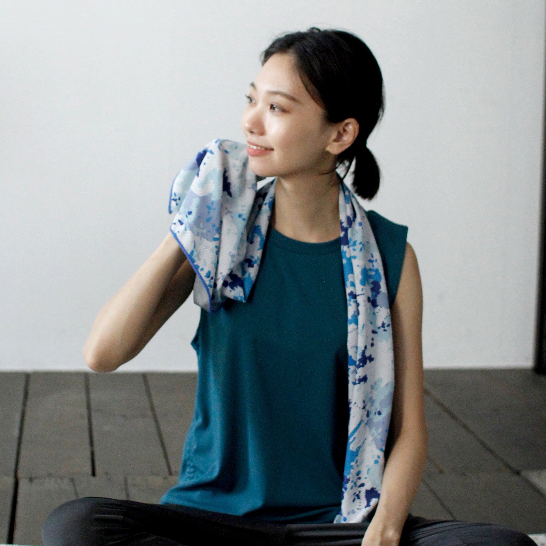 髪から顔と首元までくるっと包み込んでオシャレに熱気をガード。