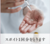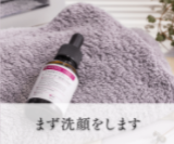 ②洗顔後、一番最初(化粧水の前)にスポイト1回分を手のひらに取り、顔から中心にやさしく全体へ広げます。