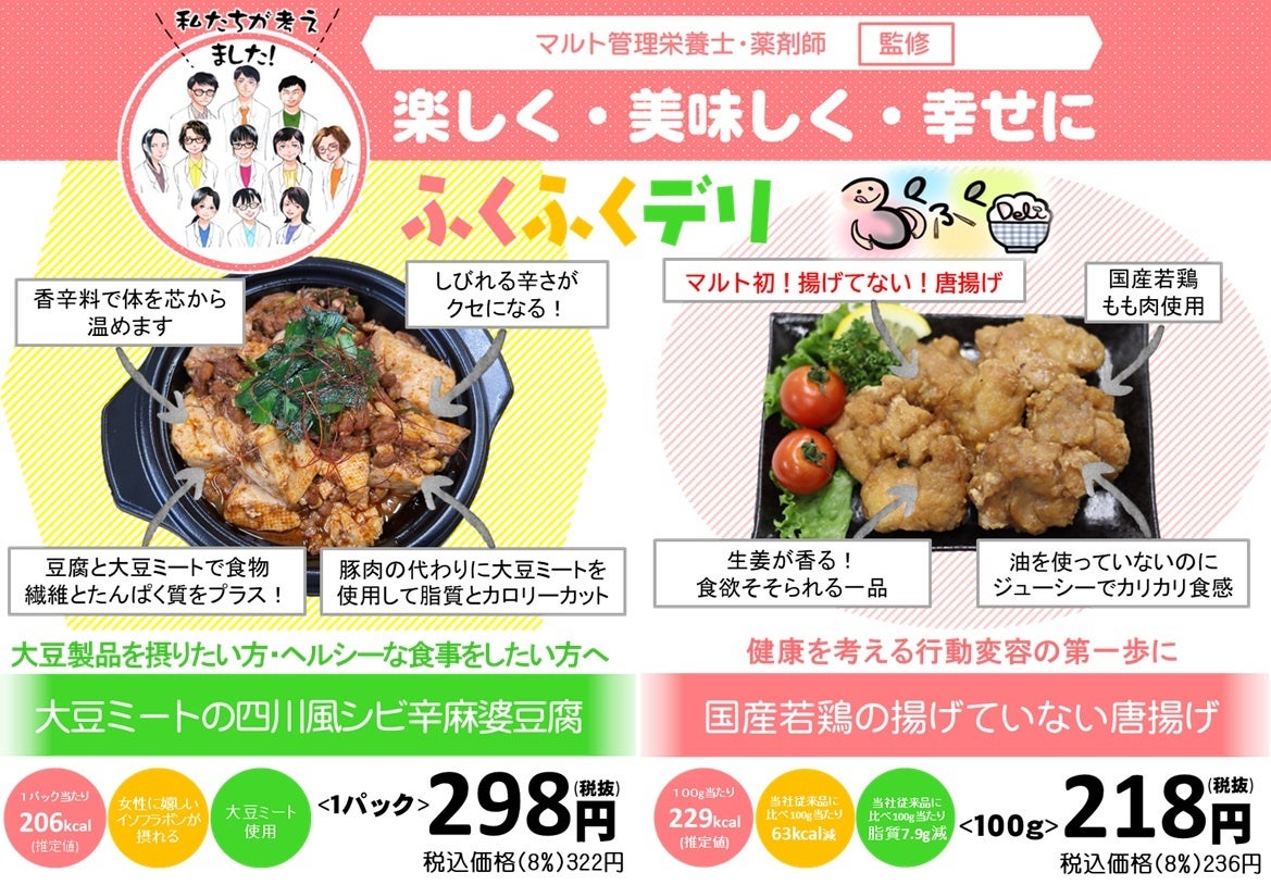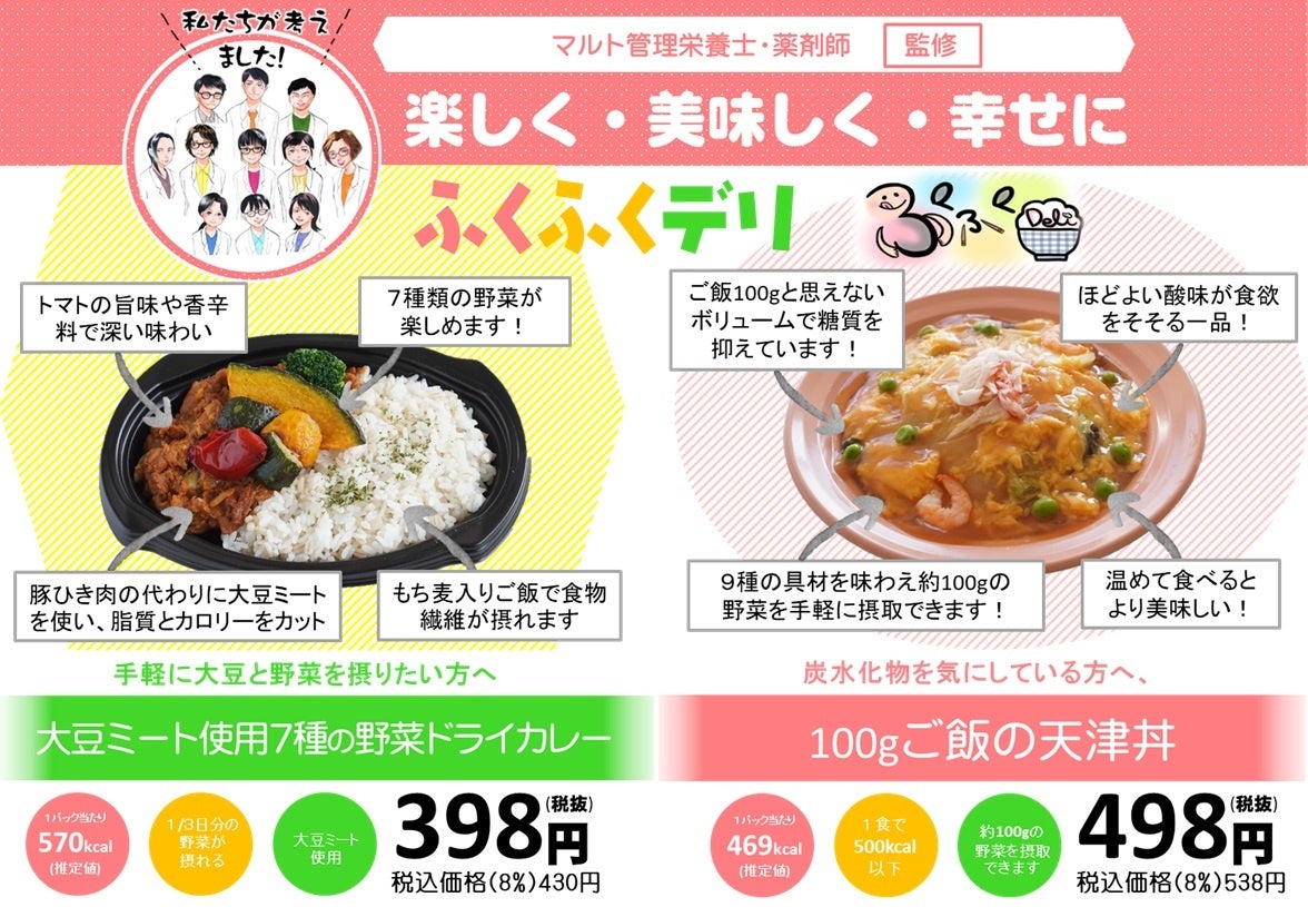 さて、昨年度5月より開始いたしました「福幸プロジェクト」の、マルトの薬剤師と管理栄養士が監修開発した「ふくふくデリ」ブランド第4弾として6品目の商品を販売開始いたします。