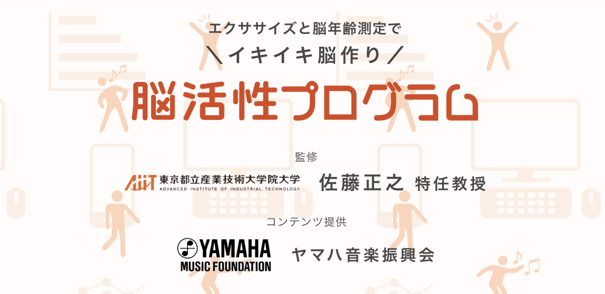 「脳活性度定期検査(略称「脳検」)」を展開する、株式会社脳活性総合研究所(本社:東京都千代田区、代表取締役:太田 芳徳、以下「脳活総研」)はこの度、一般財団法人ヤマハ音楽振興会(本部:東京都目黒区、以下「ヤマハ音楽振興会」)によるコンテンツ提供の元、オンラインから自宅で簡単に参加できる月額制の「脳活性プログラム」の提供を開始いたしました。