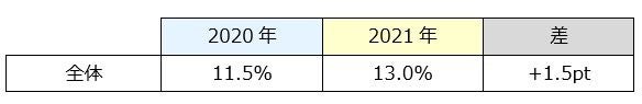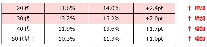 20代を除き「減少」していたコロナ禍1年目とは、異なる結果に。