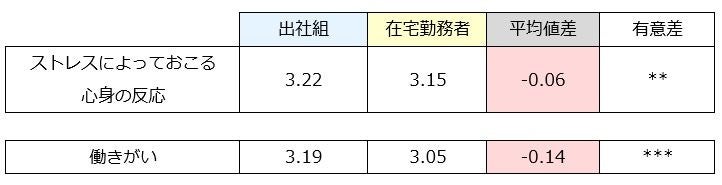 「在宅勤務者」は、「出社組」よりもストレス状態が悪く、“働きがい”の低下も懸念。