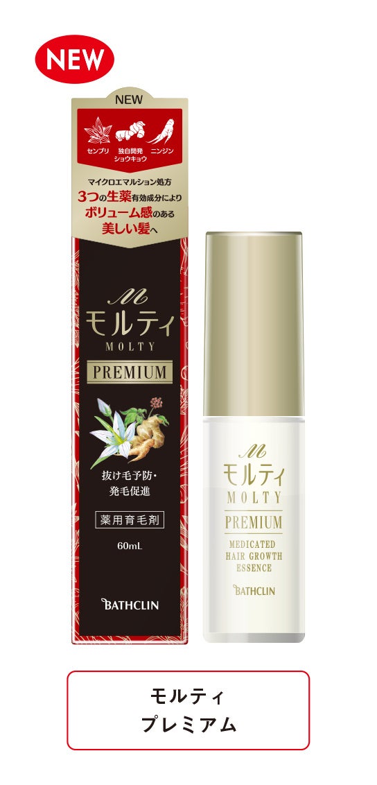 株式会社バスクリン(本社:東京都千代田区 社長:三枚堂正悟)は、このたび、頭皮環境の変化により生じる髪や頭皮の悩み・症状をケアする女性向け育毛剤No.1*1ブランド「モルティ」から、高浸透*2*3 マイクロエマルション処方&生薬成分の組合せが効果を発揮し、自然なボリューム感のある髪に導く「モルティ プレミアム」を2月21日(月曜日)に新発売します。