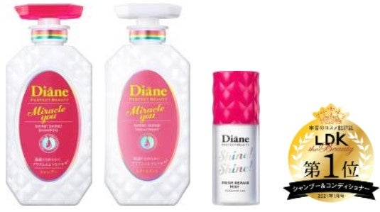 発売からわずか10日間で、100万本の売り上げを達成し たダイアンパーフェクトビューティー 。厳選したオーガ ニックアルガンオイル(※1)とビューティーケラチン(※2) を贅沢に配合し、ネイチャーとサイエンスの融合により クオリティの高い潤い&美髪ケアを実現します。 ダイアン パーフェクトビューティー 公式ブランドHP:https://www.moist-diane.jp
