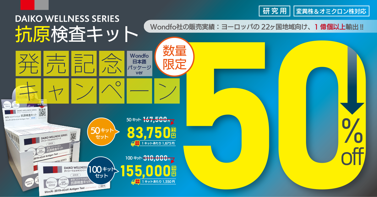 この度ダイコーウエルネスシリーズの発売記念キャンペーンとして、定期検査等でご使用いただきやすいよう50キット・100キットを各100セットの数量限定にて50%OFFにてご提供いたします。