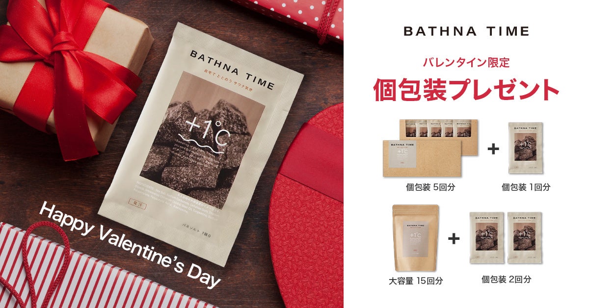 自宅でサウナ気分が味わえる発汗系バスソルトBATHNA TIME(バスナタイム)。おしゃれなパッケージで男女問わずお使いいただけます。バレンタインのギフトにぴったりな商品をお買い得にお求めいただけます!