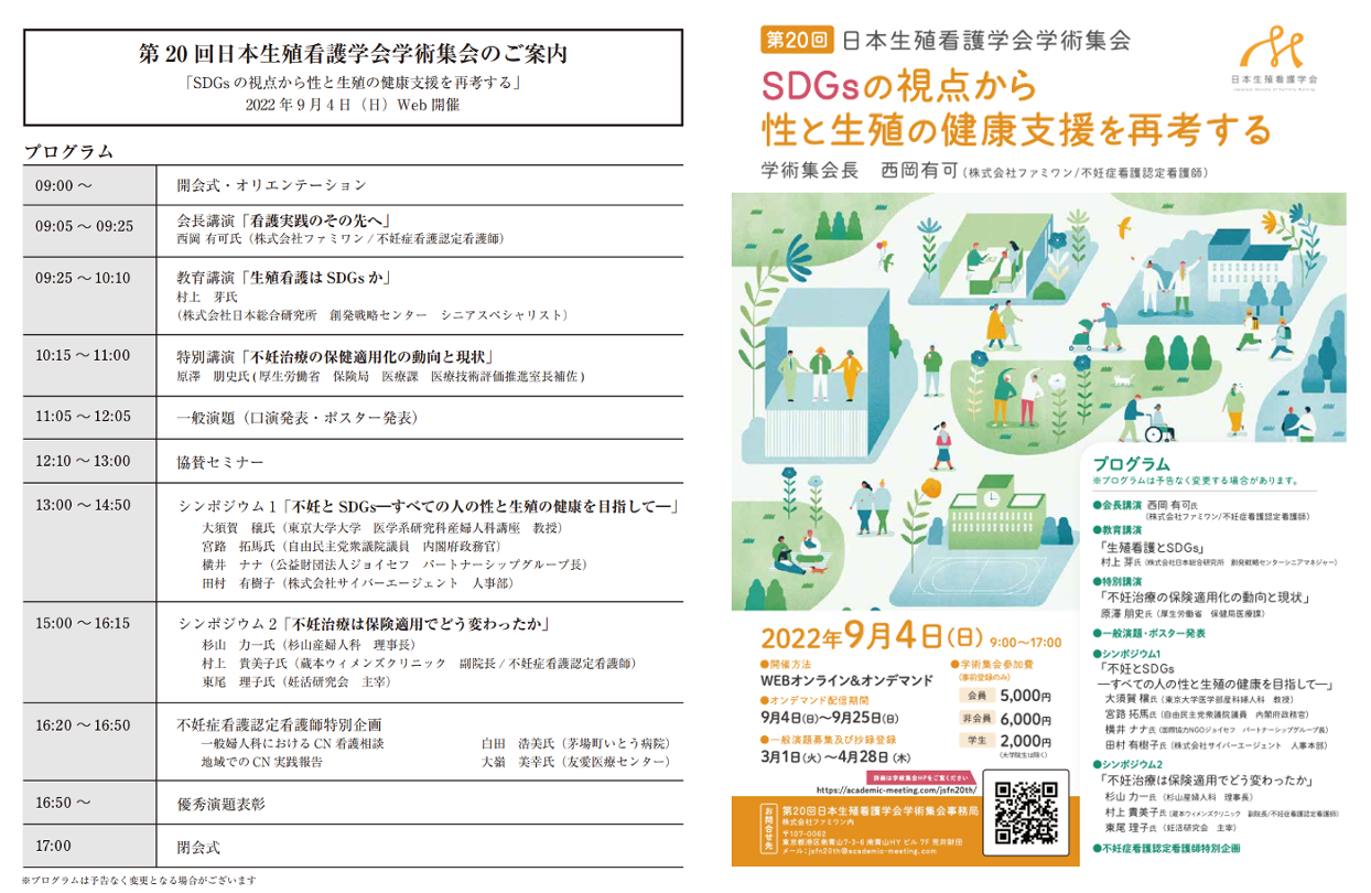 「子どもを願うすべての人によりそい 幸せな人生を歩める社会をつくる」をビジョンに掲げ、LINEを活用した妊活コンシェルジュサービス「famione(ファミワン)」 https://lp.famione.com/ を提供する株式会社ファミワン(本社:東京都渋谷区、代表取締役:石川勇介、以下当社)の代表看護師 西岡有可が大会長を務める第20回日本生殖看護学会学術集会(事務局:当社)のプログラムが確定し、特設サイトが開設されました。