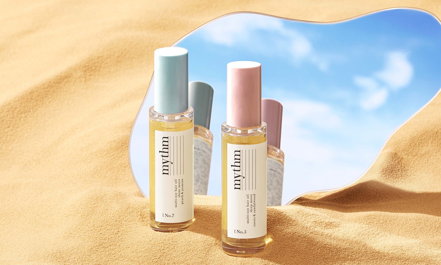 「mythm(ミズム)」の記念すべき初めての商品である「mythm(ミズム) マルチユースヘアオイル」は、繰り返されるヘアカラーなどで傷んでしまった髪に着目したヘアケアアイテム。髪や肌に馴染みやすい天然由来の植物油がダメージ毛に浸透補修し、潤いのある艶やかな髪へ導きます。さらに、自信が湧いてくるようなフレグランス調のこだわった香りで、HAPPYな気持ちをもたらします。