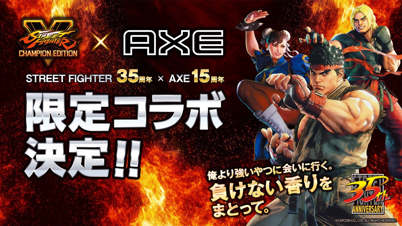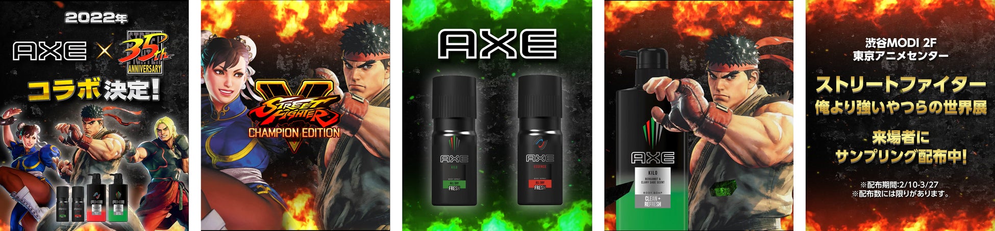 ユニリーバ・ジャパンが展開する、世界的にも有名なフレグランスブランドAXE(アックス)は、全世界で人気を誇り2022年に35周年を迎える格闘技ゲームの代表格「ストリートファイター」との年間コラボレーションを実現しました。年間コラボ活動の第一弾として2022年2月10日(木)~3月27日(日)の期間、東京アニメセンター(東京都渋谷区)で開催する35周年企画「ストリートファイター 俺より強いやつらの世界展」 に協賛し、「アックス フレグランス ボディスプレー」のサンプリングプロモーションを展開いたします。