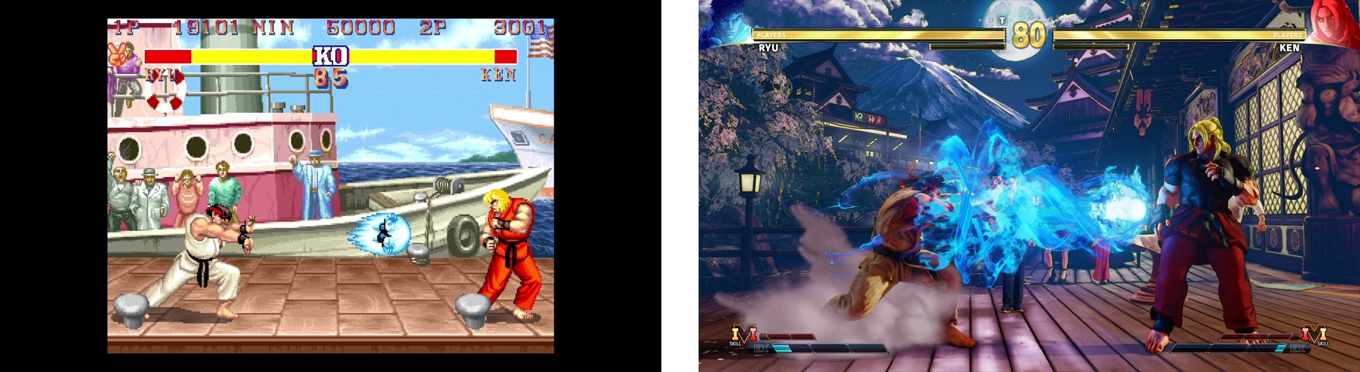 「ストリートファイター」シリーズは、1987年に業務用ゲーム機として第1作目を発表後、1991年発表の「ストリートファイターII」において画期的な対戦システムが話題を呼び、大ヒットを記録しました。家庭用ゲームソフトでは対戦格闘ゲームというジャンルを確立し、今なお進化し続け、世界中で人気を博しています。