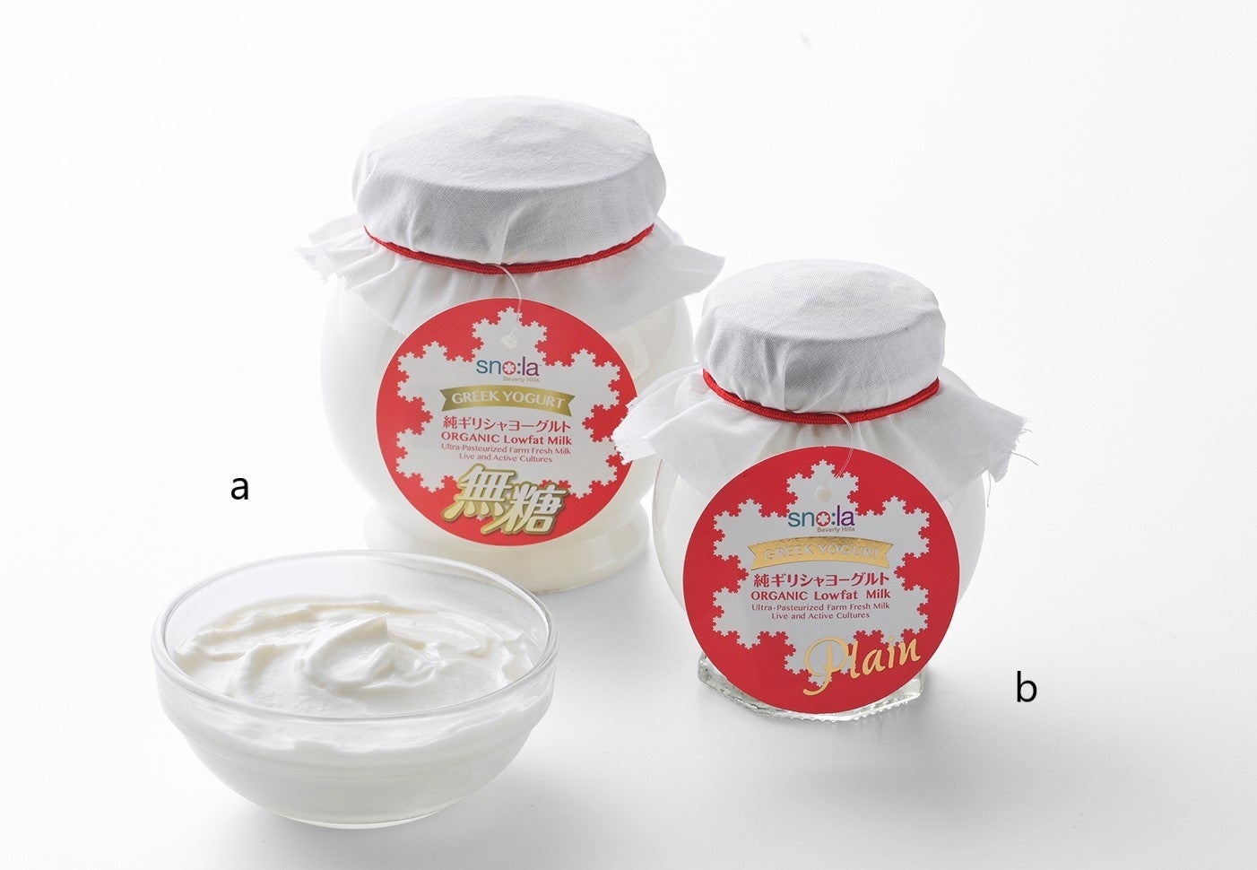 <スノーラ>a. 純ギリシャヨーグルト 無糖(255g) 1,424円 b. 純ギリシャヨーグルト 加糖(ブルーアガベ)(110g) 712円