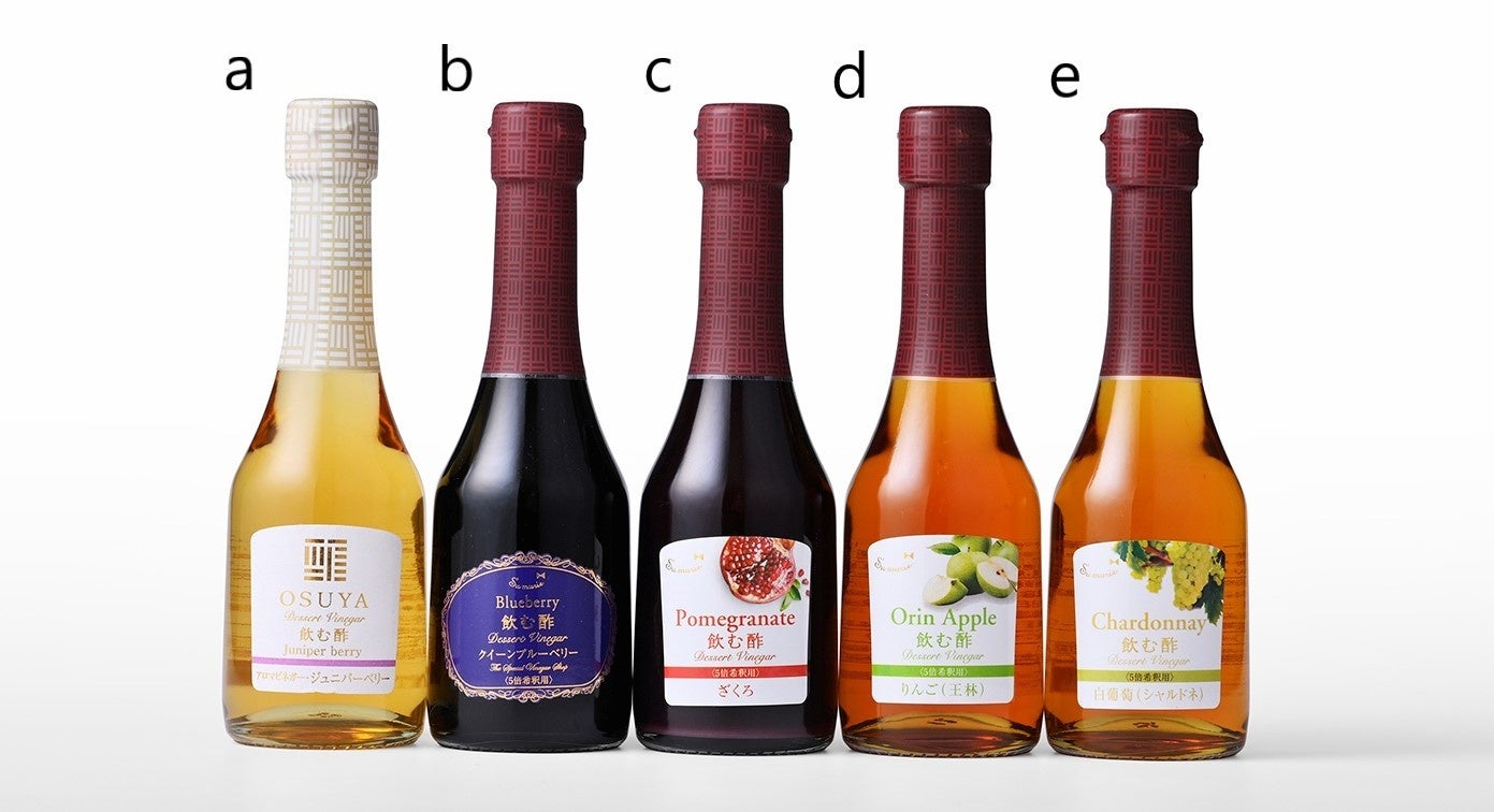 女性に人気の果物「ざくろ」や香り豊かな「シャルドネ(白ぶどう)」などの果物を発酵させた果実酢をベースに砂糖、香料を使わずに作ったデザートビネガーが美容と健康をサポートします。水や炭酸水で割ったり、料理に加えてお楽しみください。
