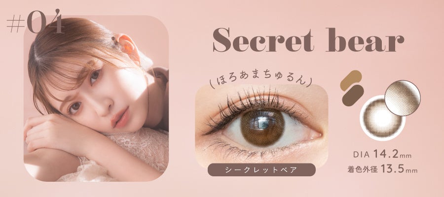 時には甘く、時にはオトナに。カラコンを10年以上愛用するアカリンがデザインだけでなく使いやすさにもこだわった、ナチュラルだけどしっかり可愛くなれる4つのカラーラインナップとなっています。