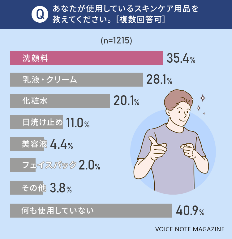 今回は男性のボイスノート会員1,215人を対象に、「スキンケア」についてアンケートを実施しました。
