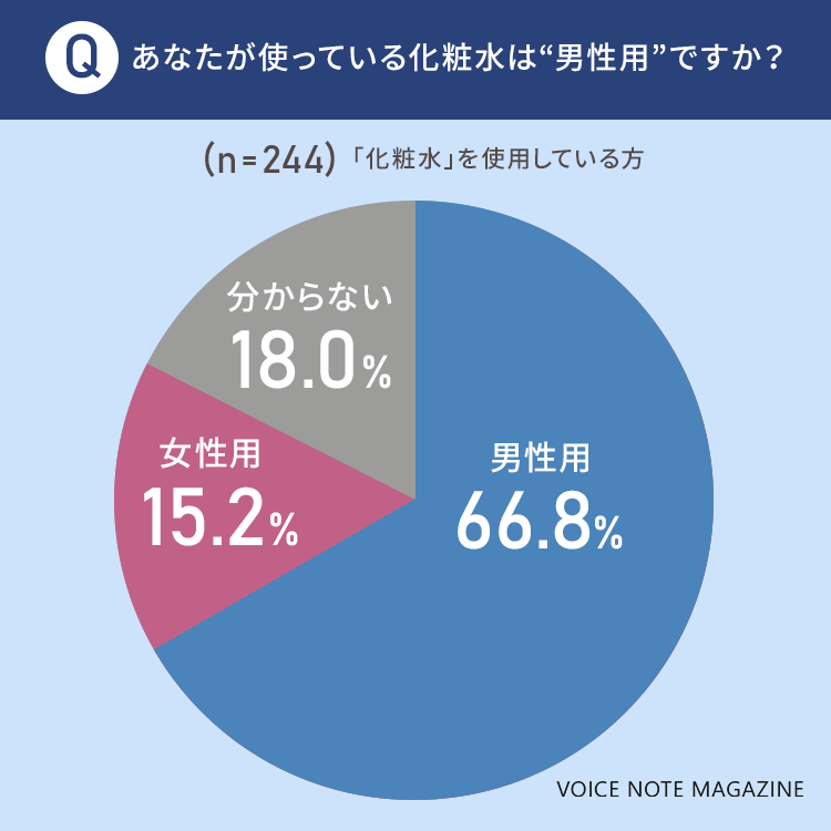 一方で、15.2%の方は「女性用」の化粧水を使用していると回答していました。