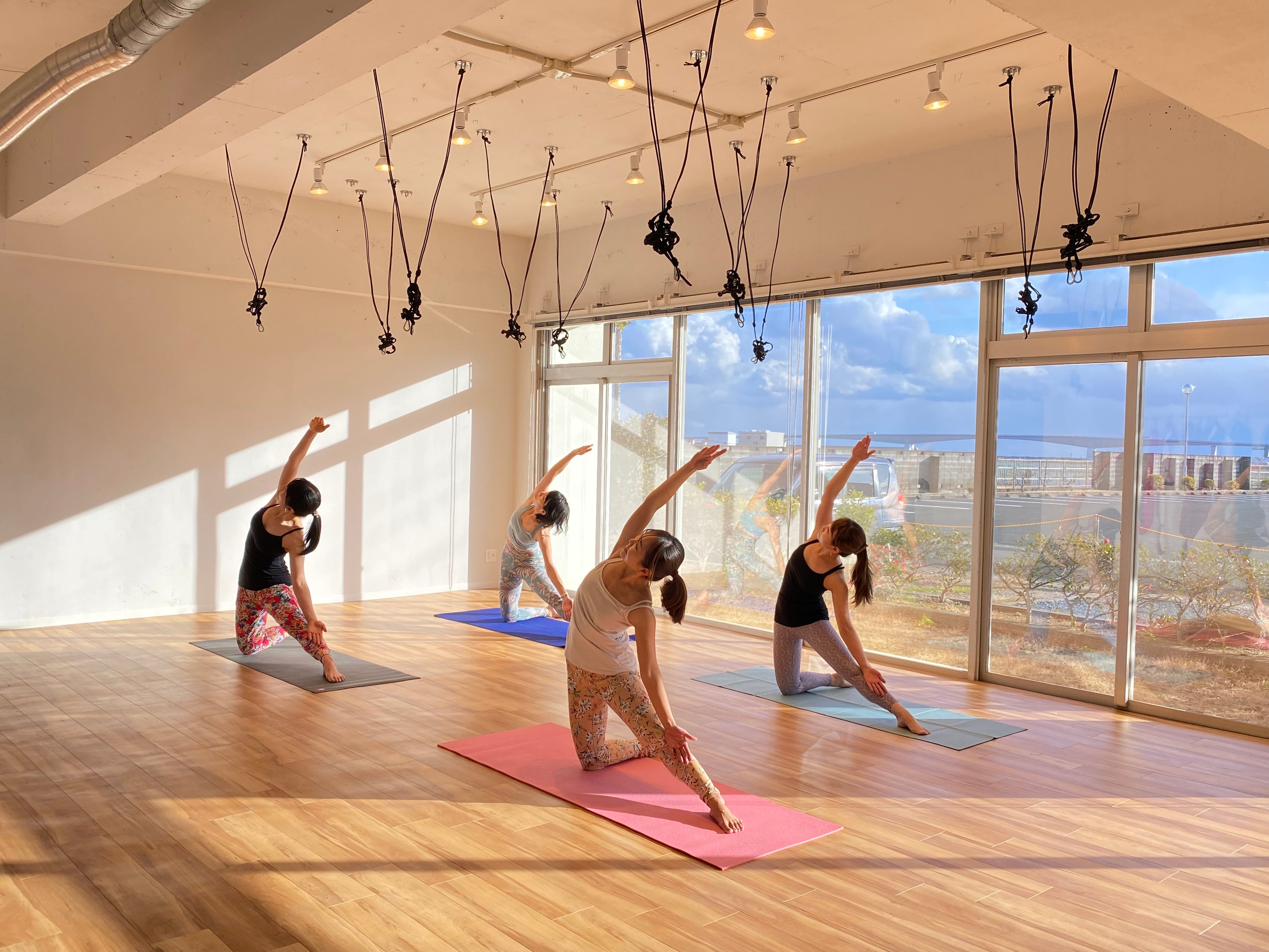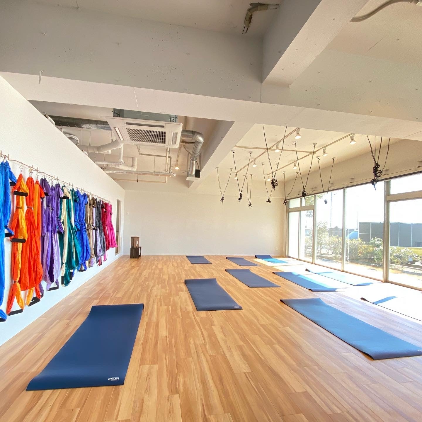 浜松の景勝地弁天島の赤鳥居がご覧いただける眺望豊かな立地。ガラス張りのスタジオからは浜名湖、遠州灘へと広がる絶景がご覧いただけます。非日常を体験していただけるように、今回新たにニューヨーク発の空中トレーニング「シルクサスペンション」を導入。ヨガはもちろん、シルクサスペンションも通じて、身体や心の安定性が高められるよう、充実のプログラムをご提供いたします。