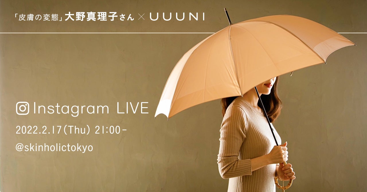 そしてこの度、人気美容家“大野真理子”さんコラボレーションが実現し、2月17日(木)21:00-より大野真理子さんのインスタグラムアカウント(@skinholictokyo)にてライブ配信を開催致します。自ら「皮膚の変態」と謳う、大野真理子さんがベースメイクのこだわりやUUUNIの商品紹介などを行います。また、ライブ配信の視聴者限定で「BrightUp Skin Foundation」をお得に購入できる、特別クーポンを配布予定。乾燥するこの季節に、お肌と向き合うライブ配信をぜひご覧下さい。