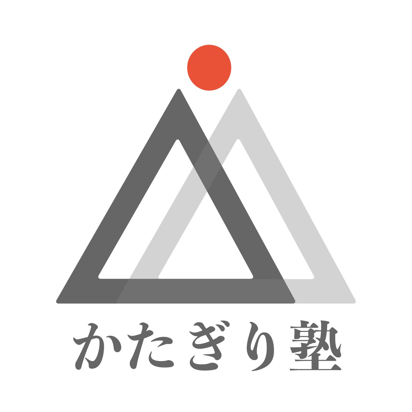 かたぎり塾ロゴ|トレーナーと塾生をあらわす2人の人(2つの三角)が二人三脚で健康な状態や理想の身体(赤丸)を目指すという意味が込もっており、私たちのフィットネスに対する姿勢が一目で伝わります