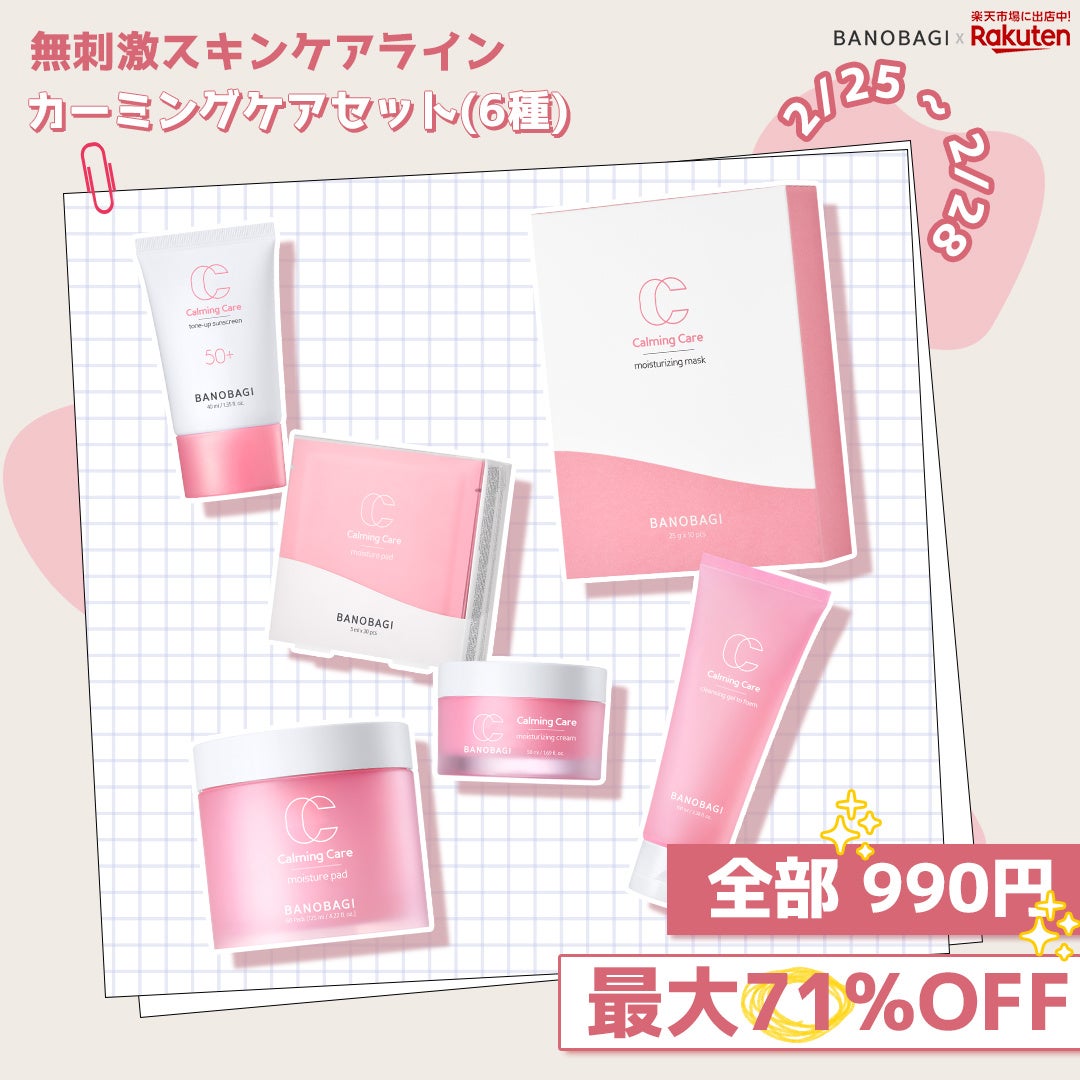 特に刺激を受けた肌を優しく包み込み、水分は補給する「カーミングケアライン5種」▲ジェルツーフォーム▲モイスチャーパッド60枚·30枚▲モイスチャーライジングクリーム▲モイスチャーライジングマスク▲トーンアップサンスクリーンを、それぞれ990円激安で販売します。