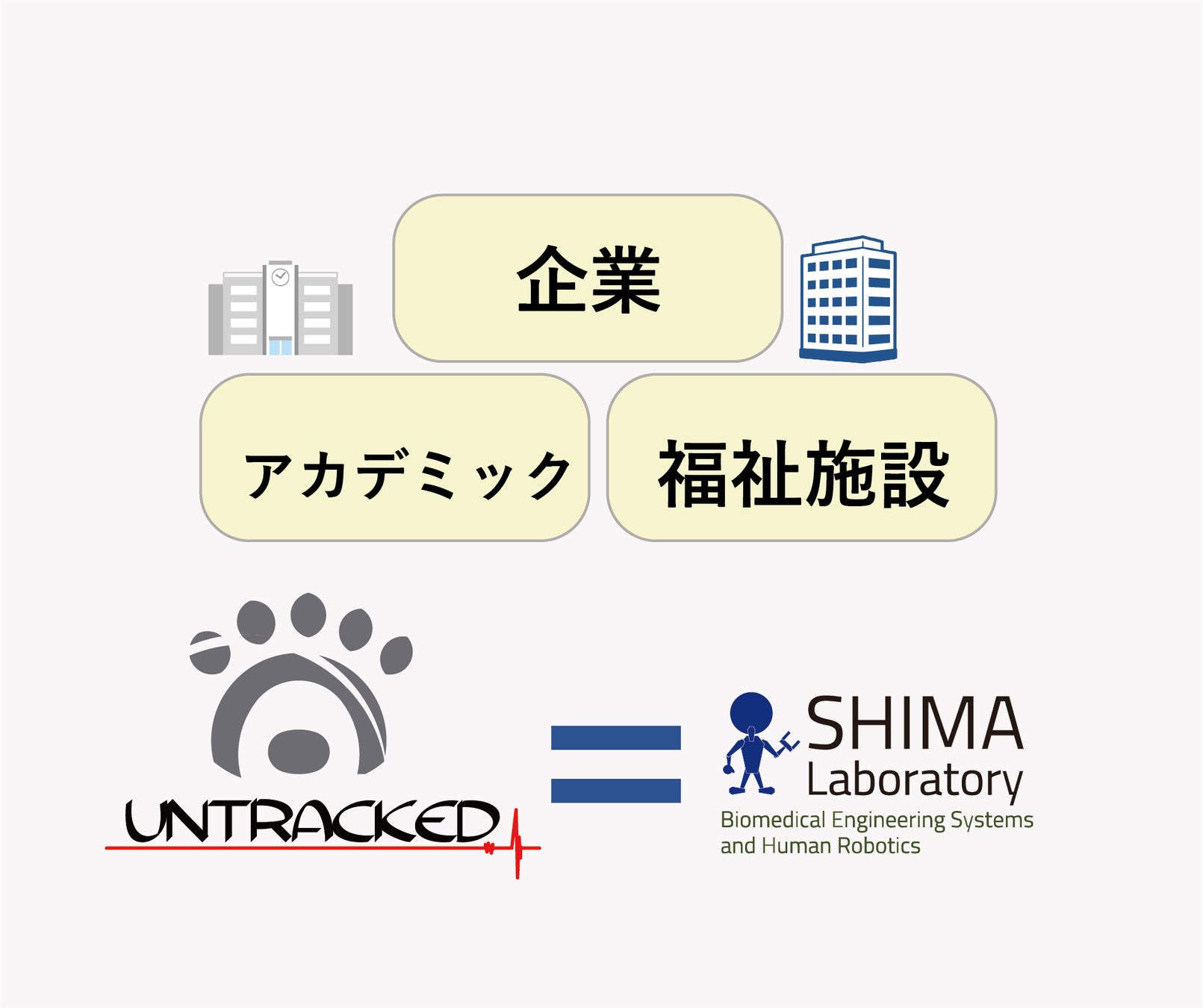 UNTRACKED株式会社は横浜国立大学発ベンチャーとしてヒトのメカニズムモデルと独自の確率的AI 技術による効果的な人間支援システムを身近な装置として届けることを目指して設立しました。「今よりも新しい世界を。」未だ知らないヒトの神秘を探求するとともに、理学療法学・工学の専門家が人々の安心・安全な生活や技術開発をトータルサポートします。
