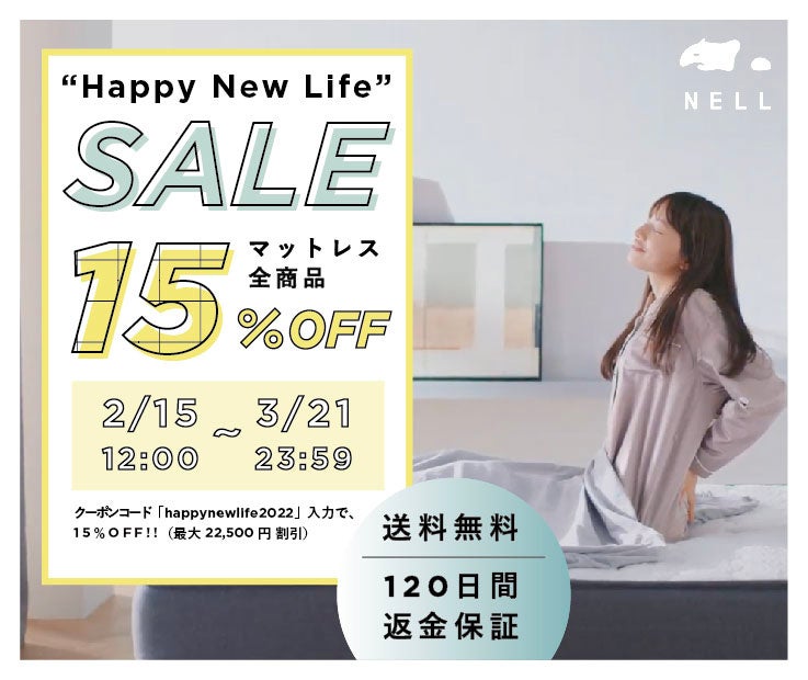 2月15日(火)より「“Happy New Life” SALE 2022」開催 『NELL マットレス』昨年大好評のセール企画を本年も実施