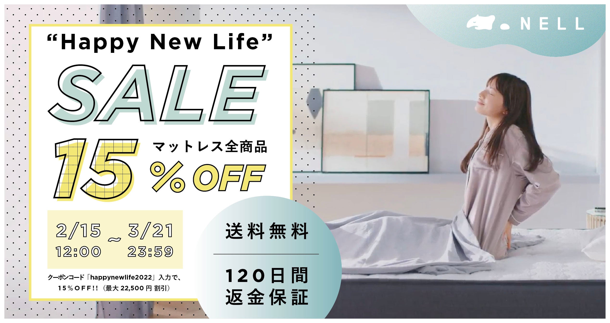 ◼️「 “Happy New Life” SALE 2022」開催、『NELL マットレス』全サイズが15%OFF