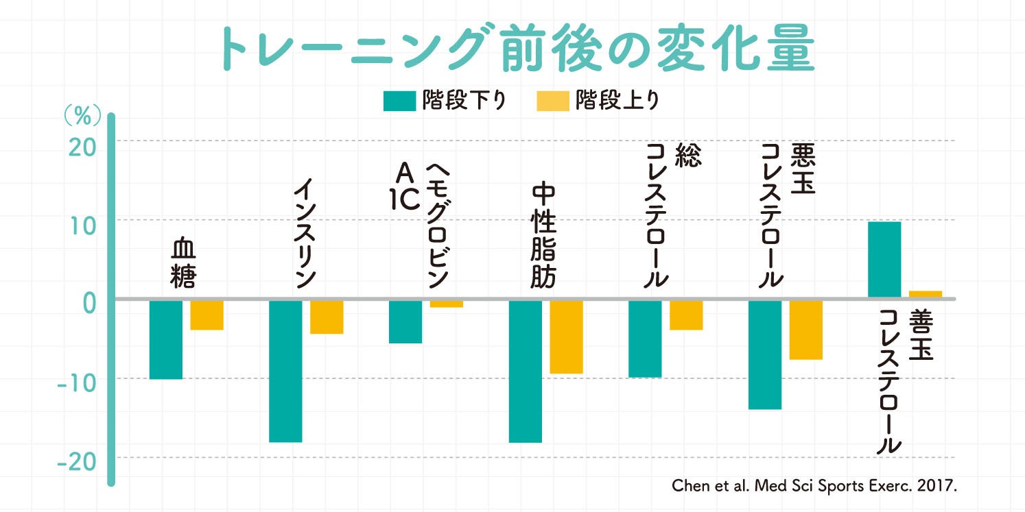 エキセントリック運動によりインスリンの感受性が良くなり、血液中の中性脂肪や総コレステロールの値も下がります。「エキセントリック運動は良薬」です。