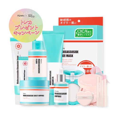 スキンケアシリーズ「マデカソCICAシリーズ」とベースメイク・ポイントメイクシリーズの「ジューシーパン シリーズ」から人気のアイテムが詰め合わせになった限定セット。全6種類のトレカが付いてきます。