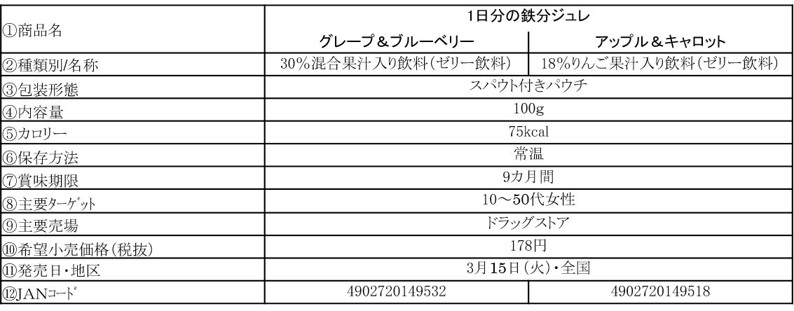 森永乳業は、女性向け鉄分補給ゼリー飲料「1 日分の鉄分ジュレ」(グレープ&ブルーベリー/アップル&キャロット) を 3 月 15 日(火)より全国にて発売いたします。