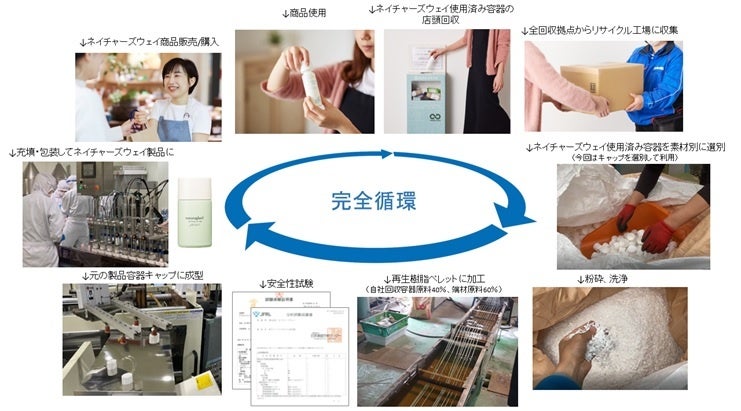 『Cap to Cap』は、ネイチャーズウェイが販売した製品容器を、販売ルートを使って自社回収し、再びネイチャーズウェイ製品として世に送り出すという「完全循環」で実現されています。