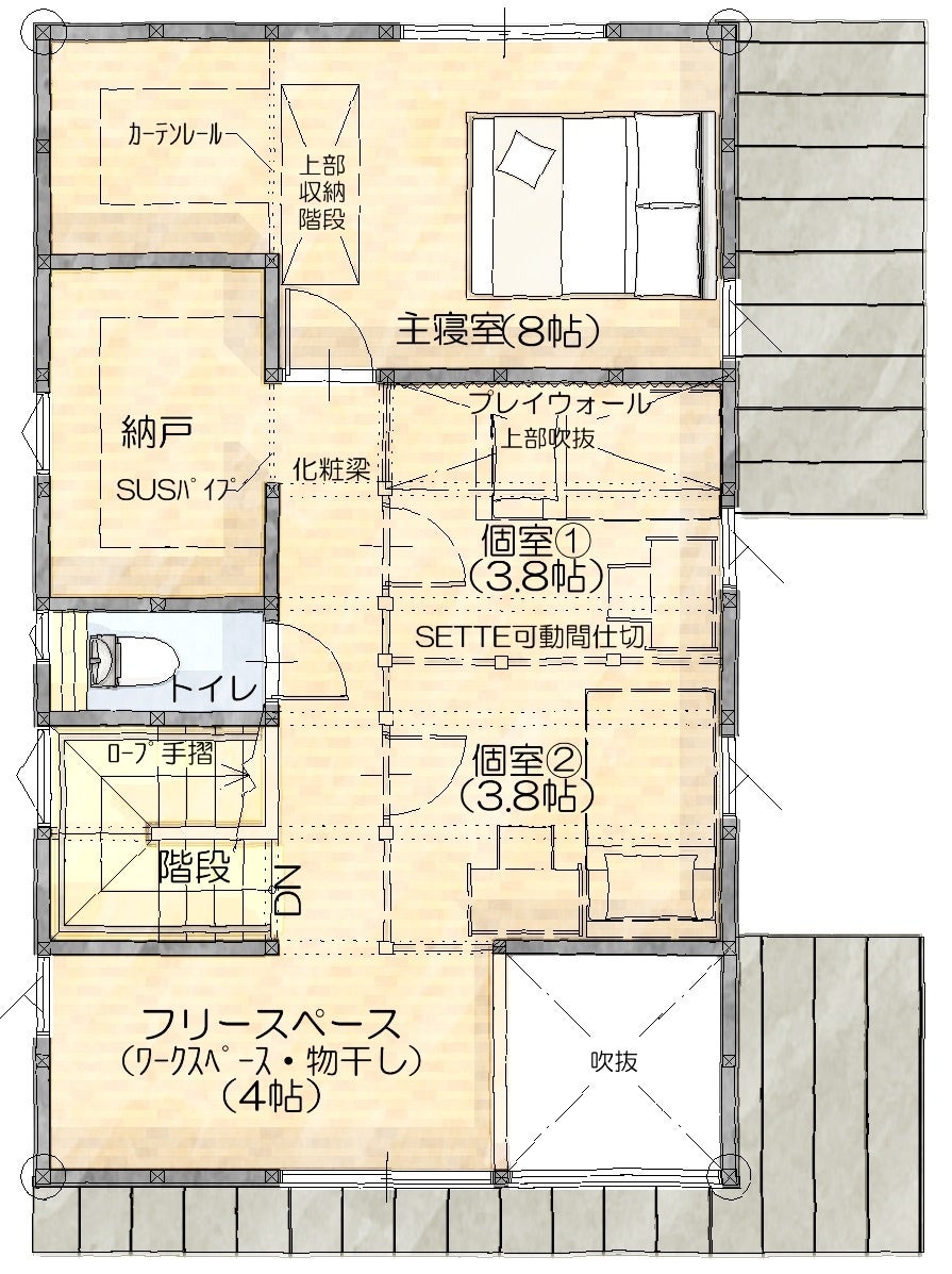 ※モデルハウスのプラン以外にも、「ボルダリングウォール」や「階段下収納」等のプランも。詳しくはお問い合わせください。