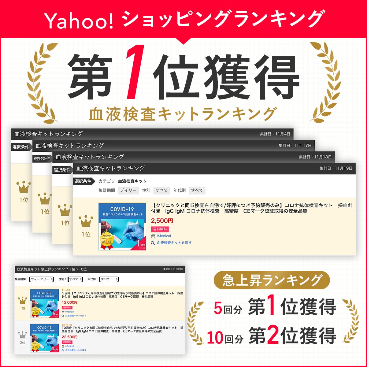 Yahoo!ショッピング血液検査キットランキングに連日ランクインしており、皆様に大変ご好評いただいております。