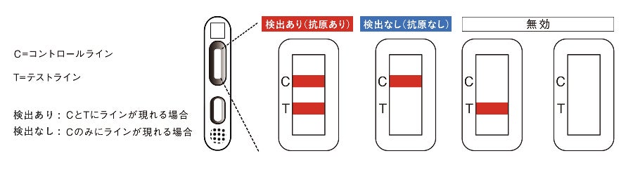 抗原検査とは SARS-CoV-2の構成成分であるたんぱく質を、ウイルスに特異的な抗体を用いて検出する検査法です。 たんぱく質の検出から、ウイルスの有無を判定します。本品は研究用途のため、診断目的でのご使用はできません。