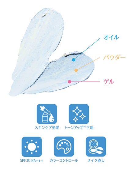 ソーダカラーの“透明感*1バーム”とクリームカラーの“トーンアップ*1バーム”が溶け合い、トーンアップ*1とカラーコントロールの効果を発揮します。韓国アイドルのような儚げで透明感*1溢れる仕上がりが叶います。