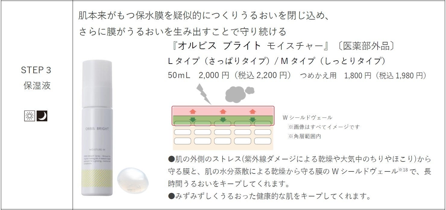 ■ 商品名:『オルビス ブライト モイスチャー』〔医薬部外品〕Lタイプ(さっぱりタイプ)/ Mタイプ(しっとりタイプ)