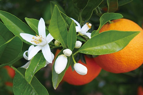 精油はネロリの原料。やわらかな甘さ、華やかさのある香りが特徴。