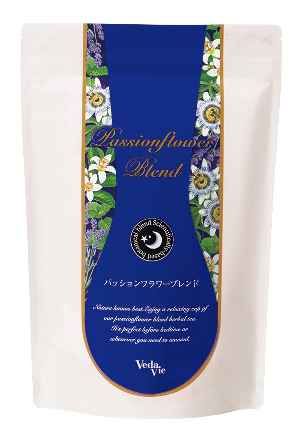 ヴェーダヴィ パッションフラワーブレンドは、ノンカフェイン、ノンカロリーで、1日の終わりにティカップ1杯を飲むだけで毎日の朝が変わり、翌朝の元気を育むナイトティです。